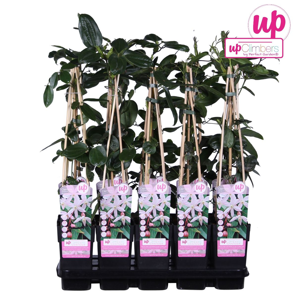 Clematis arm. 'Apple Blossom'